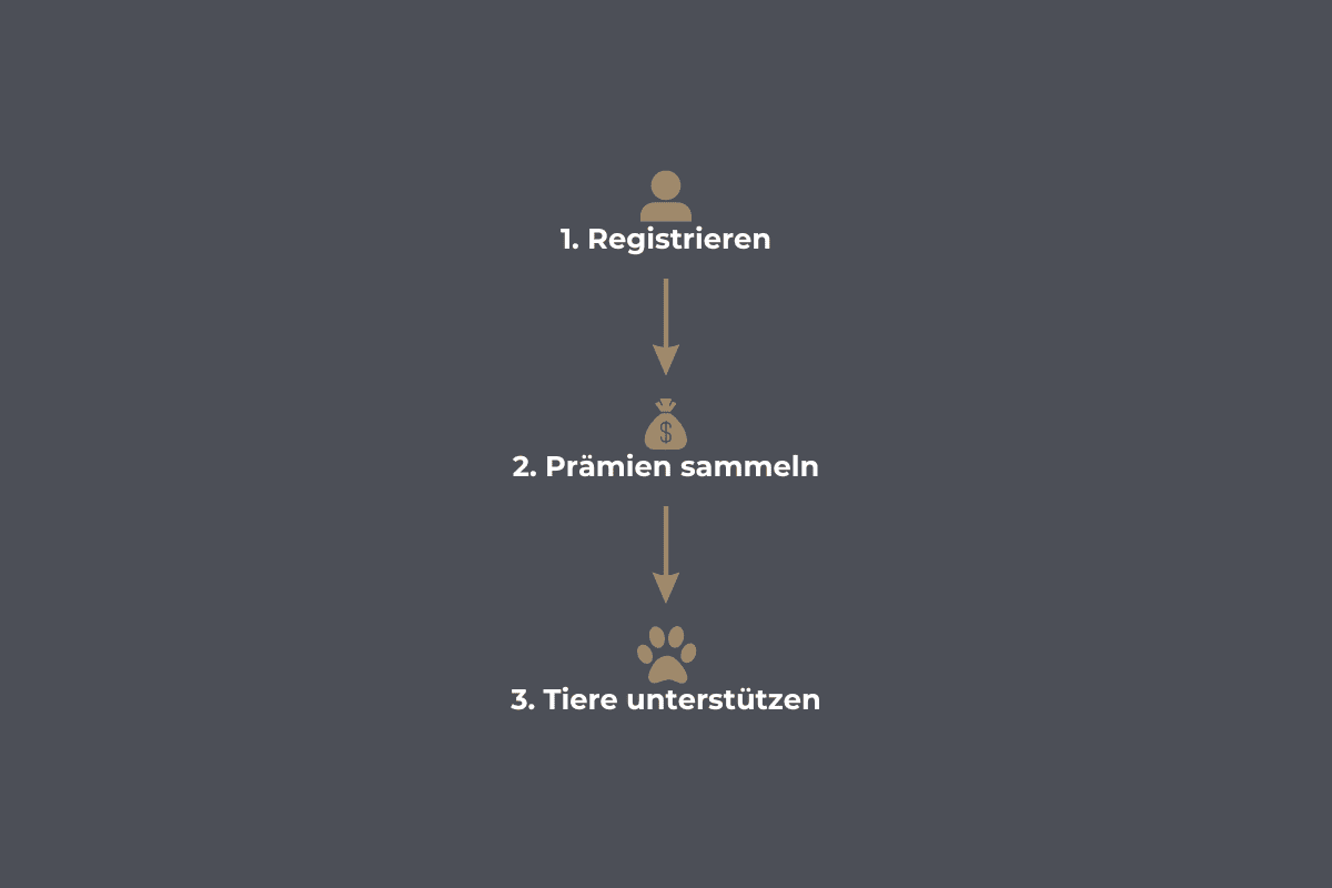 Verteile deine gesammelten Prämien an Einrichtungen, Organisationen und Tierschutzprojekte deiner Wahl, um Tiere in Not zu unterstützen.